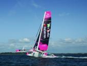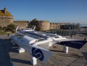 Le trimaran FenêtréA-Mix Buffet, skippé par Erwan Le Roux, a inauguré le 1er septembre dernier ses nouvelles couleurs sur le port d'Arradon dans le Golf du Morbihan.