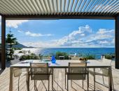 La « pergola style » de markilux métamorphose les terrasses. Les stores pergolas connaissent un franc succès sur le marché, car ils allient une apparence légère à une construction stable et résistante au vent. L'un des derniers modèles est la « pergola style » de markilux. Son design épuré reprend la forme cubique dans chacun de ses composants. Et comme aucune vis n’est visible, le store semble être moulé d’une seule pièce. À cela s’ajoute une technologie d’éclairage sophistiquée qui éclaire efficacement les composants. Ainsi, des lignes de LED commandées par une application peuvent être intégrées dans les rails de guidage latéraux et dans le coffre, mais aussi dans les piliers et leurs cache-pieds. Le système peut être équipé, entre autres, de capteurs météo, de radiateurs thermiques et de la fonction de lambrequin déroulable.